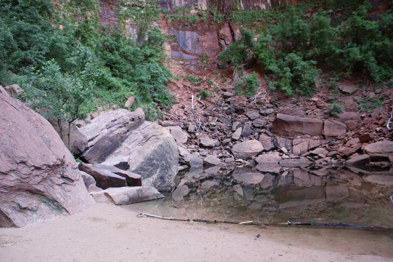 An den Upper Pools war es aufgrund der Tageszeit schon sehr schattig und kühl, was aber die mystische Stimmung im Schatten der nahen und fast rundherum steilen Canyonwände nur noch verstärkte