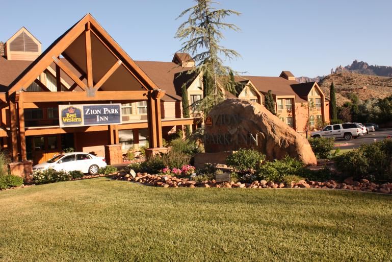 In den eigentlichen Teil des Canyons darf man mit dem Auto selbst nicht einfahren (Ausnahme man hat ein Zimmer in der Park-Lodge), deshalb haben wir erst im Hotel in Springdale eingecheckt und dann nochmal mit den gratis Shuttle-Bussen in den Park hineingefahren.