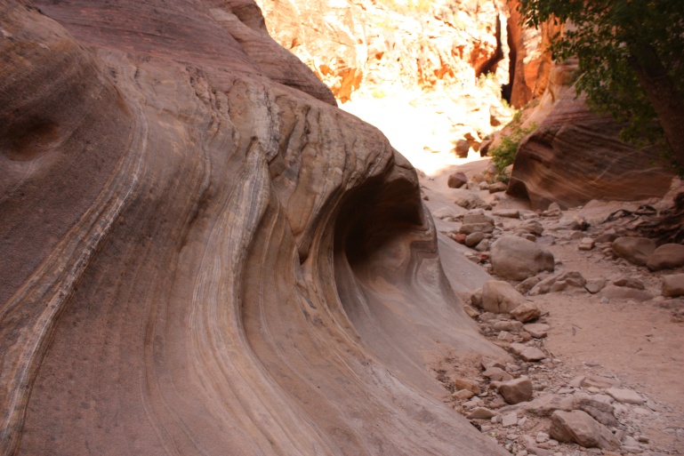 Teile des Echo Canyons verlaufen steil neben dem Trail, zwischendrin befindet man sich aber auf Höhe des Canyons und läuft durch den Slot durch um ihn dann auf der anderen Seite wieder zu verlassen.
