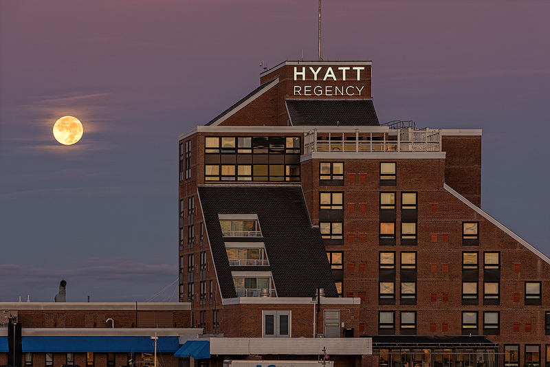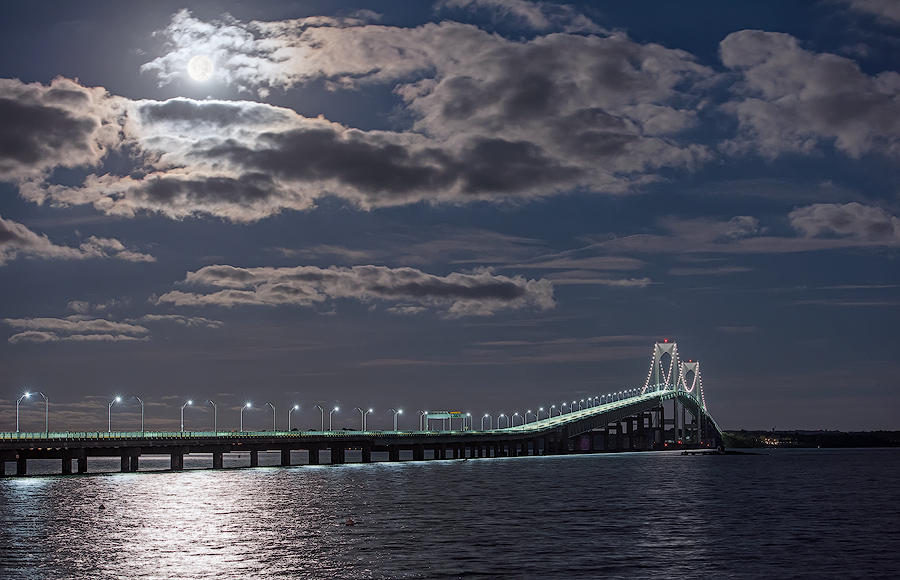 Newport Bridge bei Vollmond (vor Sonnenaufgang)