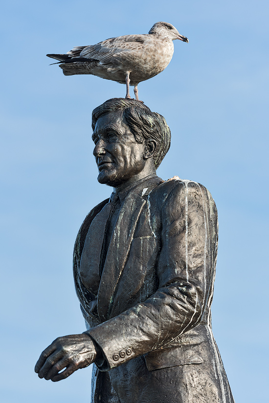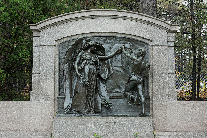 Um 6.15 Uhr komme ich in Bostons historischen Stadtteil Jamaica Plain an. Ich besuche zuerst Forest Hills Cemetery. Auf dieser Ruhestätte befinden sich viele beeindruckende Monumente, darunter die Bronzeskulptur Milmore Memorial aka „Death and the Sculptor” von Daniel Chester French. French war einer der berühmtesten amerikanischen Bildhauer des späten 19. und frühen 20. Jahrhundert. French schuf diese Skulptur zum Gedenken an die Bildhauer Martin und James Milmore. Am Fuß des Memorial befindet sich eine Bronzeplatte mit einem Gedicht. Eine Marmorkopie des Milmore Memorial kann man auch im Metropolitan Museum of Art in NYC besichtigen. French’s bekanntestes Werk sollte der USA-Kenner kennen – die kolossale Marmorstatue von Abraham Lincoln am Lincoln Memorial, Washington, D.C.