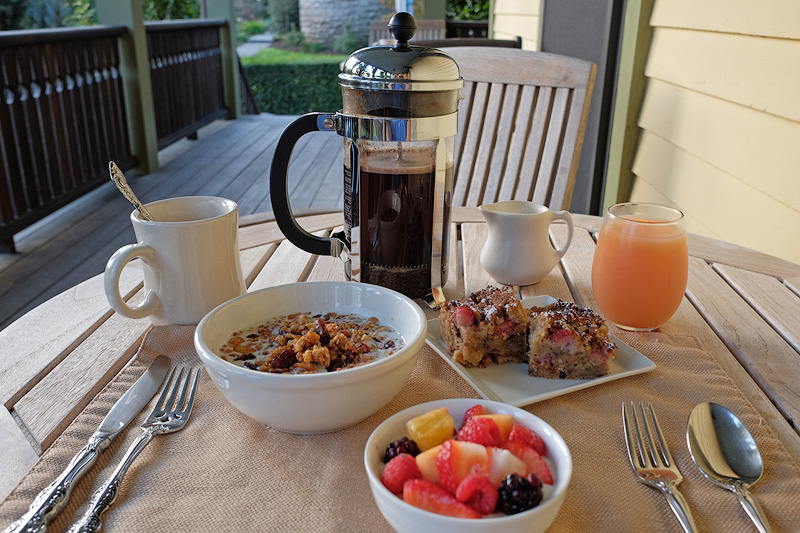 Bestes Frühstück on Tour. Feines Buffet, hausgemachte Kuchen, erstklassiger Kaffee, zwei warme Gerichte zur Auswahl usw.