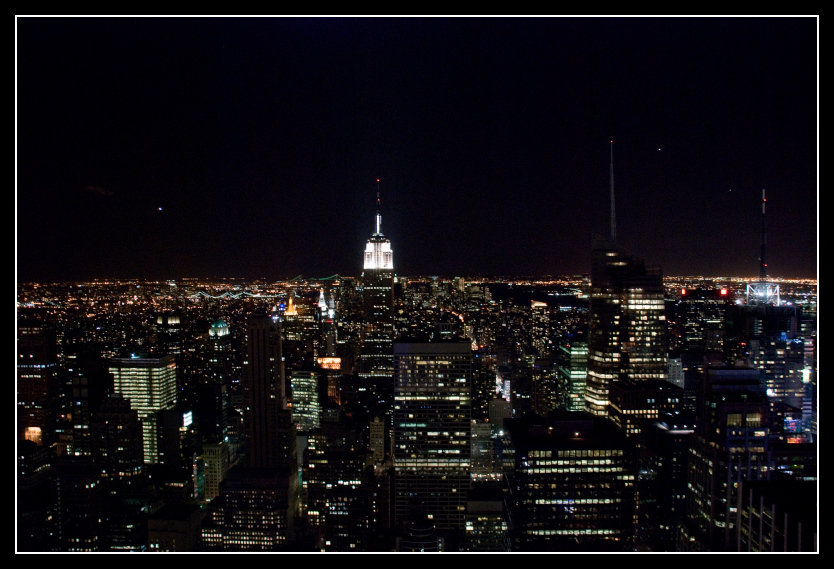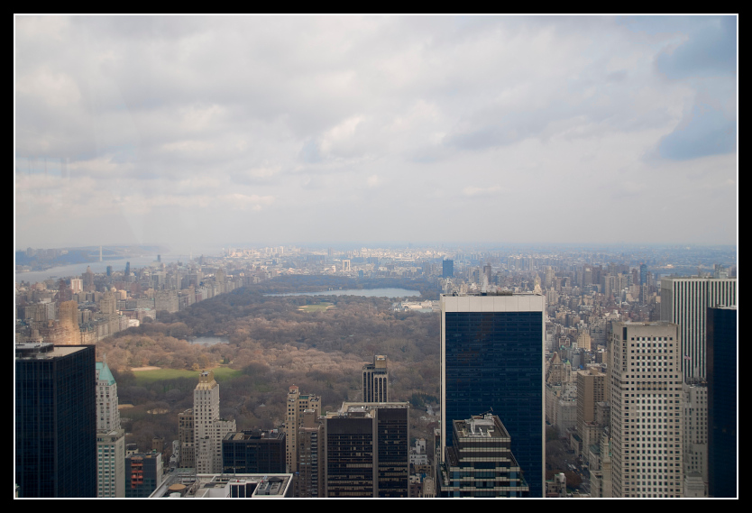 Endlich gelangen wir am Rockefeller Center an, und welch Wunder, es ist nichts - aber wirklich GARNICHTS - los, so dass wir geradewegs durchspazieren und innerhalb von fünf Minuten auf dem Dach stehen. Jetzt ärgere ich mich, dass ich mein Stativ nicht mitgenommen habe. Denn scheinbar darf man es hier tatsächlich mit hinaufnehmen. Nun gut, versuche ich ohne Stativ mein Bestes, aber so viel brauchbares kommt nicht raus. Naja, man braucht ja einen Grund wieder mal nach New York City zu kommen. :D