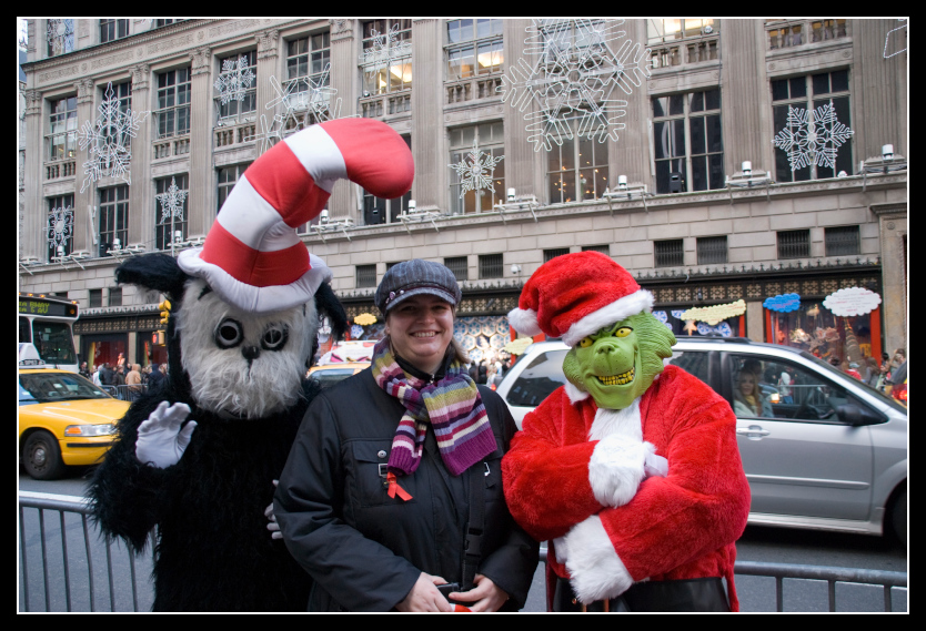 Inzwischen ist es schon wieder recht spät geworden, und wir bekommen langsam Hunger. Wir entscheiden uns den Weg zum Times Square anzutreten, damit wir im Planet Hollywood rechtzeitig etwas Essen können. Auf dem Weg dorthin kommen wir - mal wieder- am Rockefeller Center vorbei, und wir treffen den Grinch, mit dem sich meine Frau dringendst fotografieren lassen will. Natürlich nur gegen Bares, versteht sich. Irgendwie müssen die Kostüme ja bezahlt werden.
