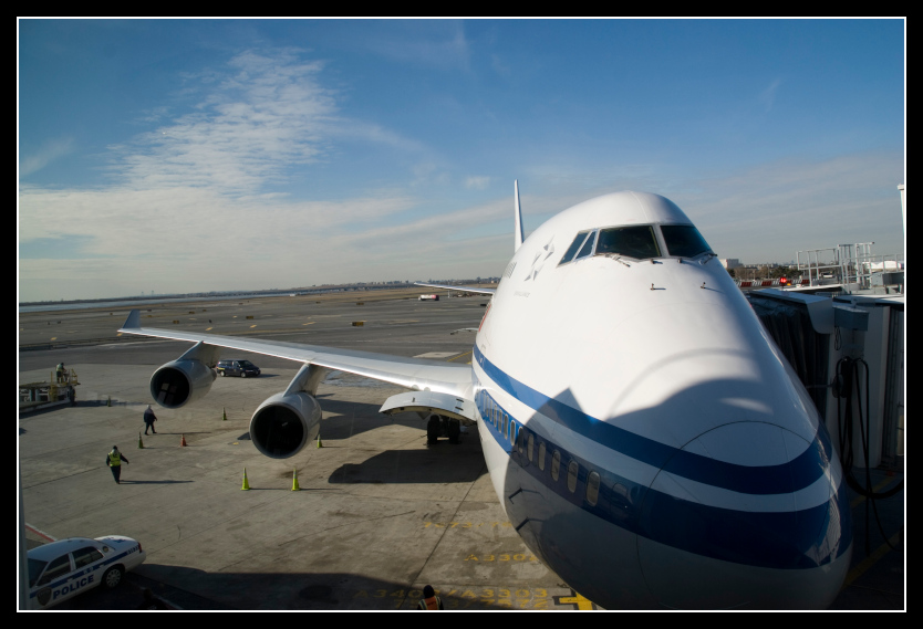 Zur Beruhigung essen wir am Flughafen noch eine Kleinigkeit, und trinken einen Kaffee. Ich schleiche durchs Terminal, um mein neues Objektiv auszuprobieren. Doch irgendwann mit Verspätung, Gatewechsel und so weiter geht es Richtung Heimat. Der Pilot versichert uns, dass er trotz 90 Minuten verspäteten Abflugs versuchen will pünktlich in Frankfurt zu landen, was er natürlich nicht einhalten kann, und wir in der Folge unseren Anschlußflug von AirBerlin verpassen.