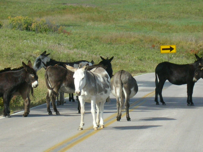 Weiter geht es also Richtung Badlands, nur eine Gruppe Esel scheint etwas gegen unsere Weiterfahrt zu haben und blockiert die Straße.