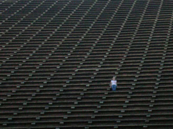 Einige Sportler nutzen die aufsteigende Bestuhlung als Sprint Training, lustig anzusehen.