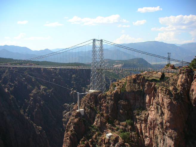 Von hier aus bekommt man ein tolles Gefühl für die Höhe der Brücke. Nach einem kurzen Stop im Souvenir Shop geht es auch schon wieder mit der Railway aufwärts. Der Ausblick von der Brücke ist atemberaubend, durch die Abstände zwischen den Holzbanken kann man gut nach unten schauen, nichts für Personen mit Höhenangst.