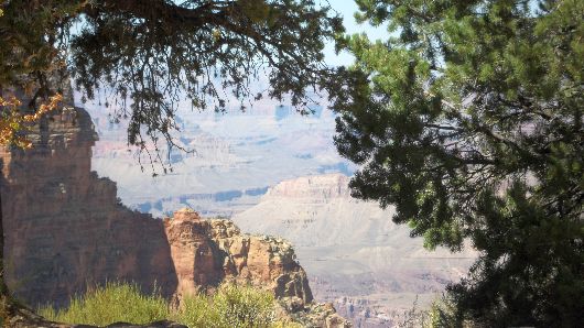 Danach fahren wir zum Visitor Center und schauen uns noch im IMAX den Film über den Grand Canyon an. Mein Kopfhörer zum Übersetzen ist leider akustisch total schlecht und kratschig, dass ich ihn dann einfach abnehme und mir den Film so anschaue. Davon habe ich wesentlich mehr und es ist ja auch eigentlich leicht zu verstehen. Der Film gefällt uns sehr gut, ist wirklich beeindruckend scheinbar durch den Canyon zu fliegen und wir sind sehr froh, uns den Film noch angeschaut zu haben. Obwohl es doch irgendwie komisch war, am Vormittag ins Kino zu gehen...