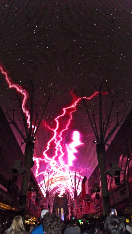 Erholt machen wir uns dann gegen 21 Uhr auf den Weg zur Fremont Street. Wir haben Glück und finden einen guten Parkplatz in unmittelbarer Nähe. Dort angekommen sind wir ziemlich überwältigt. Wie cool. Es ist gut was los und immer noch 34 Grad warm. Wir bummeln umher, lauschen der Live-Musik und lassen alles auf uns wirken. Der absolute Hammer kommt dann jedoch mit Beginn der Light-Show. Wie geil.