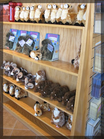 Schlange am Cliff Shelf Nature TrailIm Visitor Center, in dem vor allem Fossilienfunde aus dem Nationalpark ausgestellt sind, haben wir dann eine Begegnung mit der Familie von Bill, dem kleinen Plüschbison aus Scooby Doos Reisebericht.