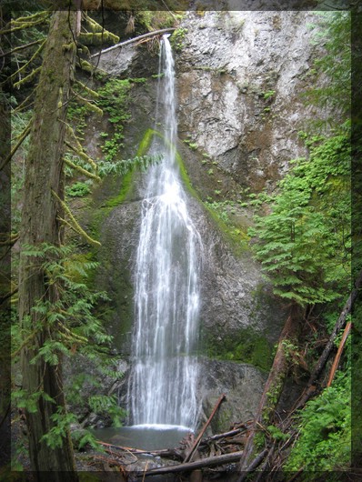 In Port Angeles angekommen folgen wir weiter der US101. Diese führt vorbei an mehreren Seen. An einem davon, dem Lake Crescent, halten wir an und gehen den Trail zu den Marymere Falls. Dieser führt durch einen eindrucksvollen Regenwald voller moosüberwucherter Bäume und mit einem farnbedeckten Boden. Immer wieder geht es über kleine Holzbrücken und -treppen. Die Wasserfälle selbst gefallen uns sehr gut. Hier begegnen wir einem Ehepaar aus Texas, das uns fragt, was so viele Deutsche hier wollen, wir hätten doch zu Hause auch Berge…