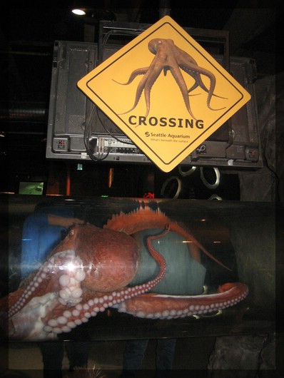 Wir nehmen den Bus zurück zur Pike Street und laufen am Pikes Market vorbei zum Seattle Aquarium. Dessen Schwerpunkt sind vor allem die einheimischen Gewässer. So gibt es hier spezielle Pudget Sound Becken, eine Unterwasserkuppel, um die herum einheimische Fische schwimmen, ein riesiges Aquarium mit Namen Window to Washington's Waters und Tide Pools bei denen das Berühren der Tiere ausdrücklich erlaubt ist.