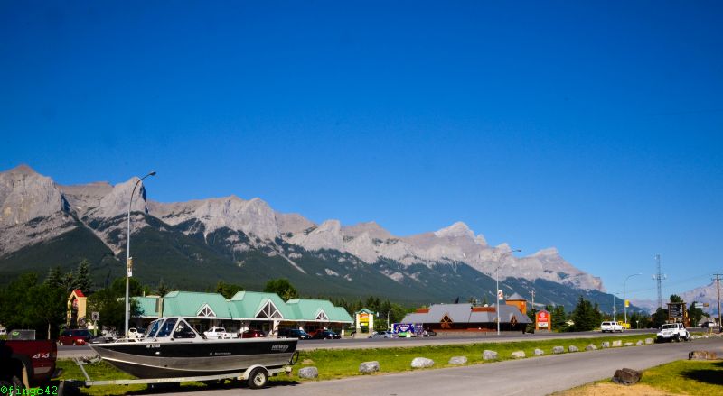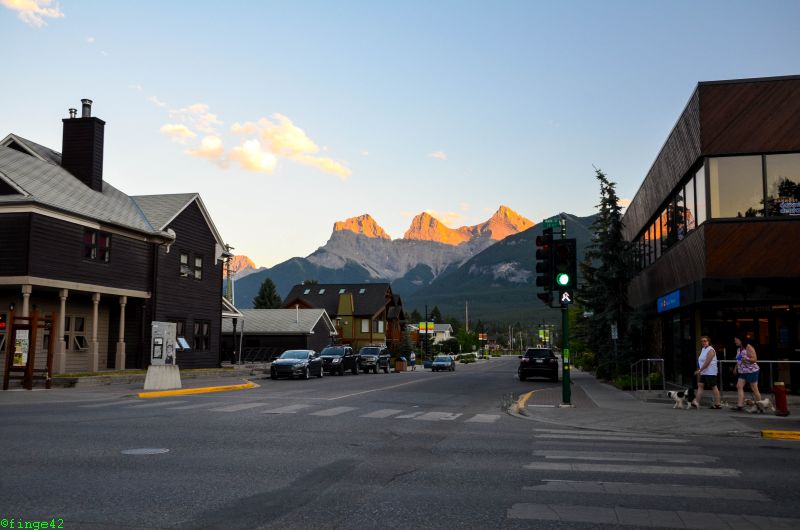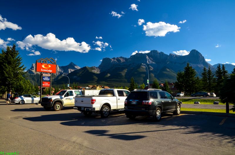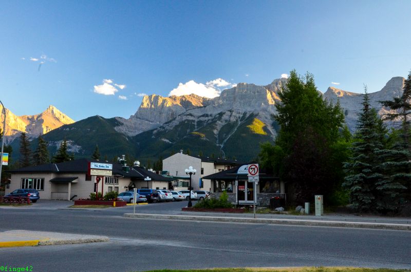 Am frühen Abend erreichen wir Canmore, einen kleineren Touristenort in der Nähe von Banff. Wir schlendern noch ein wenig durch die Straßen und kaufen Nachschub für die Kühlbox. Dann genießen wir den tollen Ausblick vom Hotel auf die Rockys und freuen uns schon auf den nächsten Tag, der uns auf den Icefields Parkway führen wird.