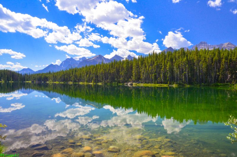 Unser erster Stopp ist am Herbert Lake. Wir sind fast allein und haben ziemlich viel Glück, dass es keinen Wind gibt. Der kleine See bietet wunderschöne Spiegelungen.
