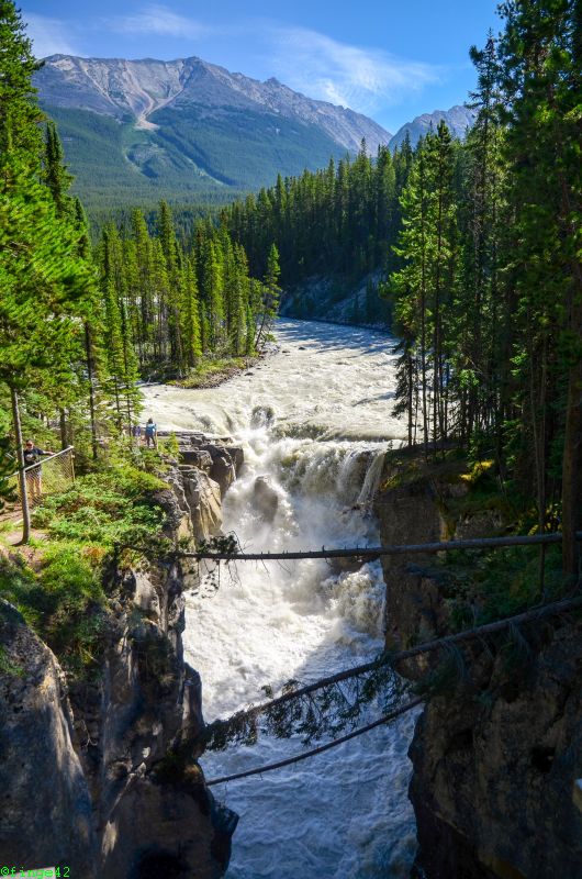 Nach einem Frühstück auf dem Zimmer geht es zunächst zum Namensgeber der Sunwapta Lodge, den nahegelegenen Sunwapta Falls.