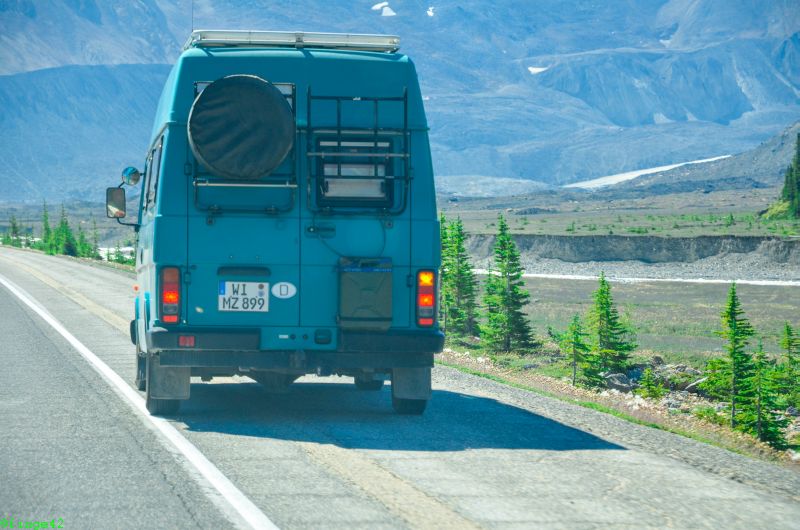 Irgendwann überholen wir einen Camper aus Wiesbaden, der hat schon eine ziemliche Strecke hinter sich.