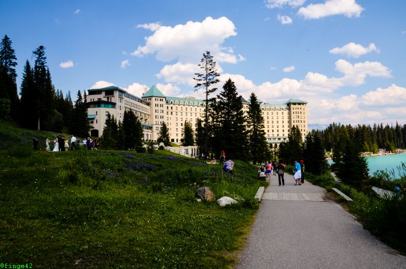 Am Lake Louise angekommen stehen wir zusammen mit gefühlt tausend anderen Menschen am Ufer. Deshalb gehen wir lieber weiter, ein Stück um den See herum und entdecken dabei die 8. Hochzeit unserer Reise. Sicherlich sind das Chateau Lake Louise und der See eine ganz besondere Kulisse für eine Hochzeit, aber ein Dudelsackspieler wäre – nach unserer Meinung - nicht auch noch notwendig gewesen.