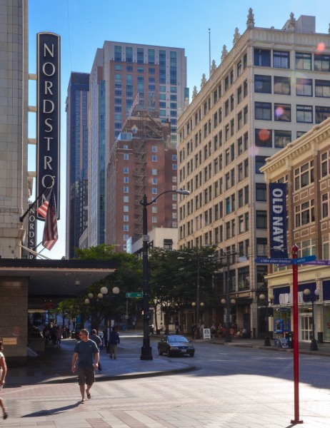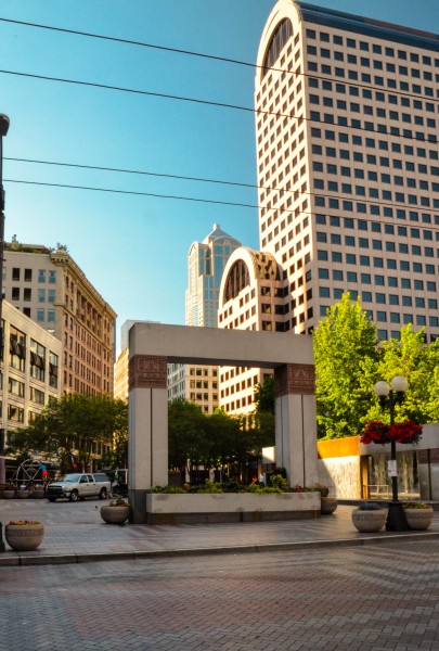 Wir sind früh wach und machen uns auf den Weg zum Stadtzentrum. Es geht erneut Richtung Space Needle, von dort wollen wir mit der Monorail fahren. Eine schnelle Verbindung, die aus Anlass der Weltausstellung 1962 gebaut wurde. Der Weg dorthin führt am International Fountain vorbei, einem Brunnen, der die Wasserspiele mit Musik begleitet.