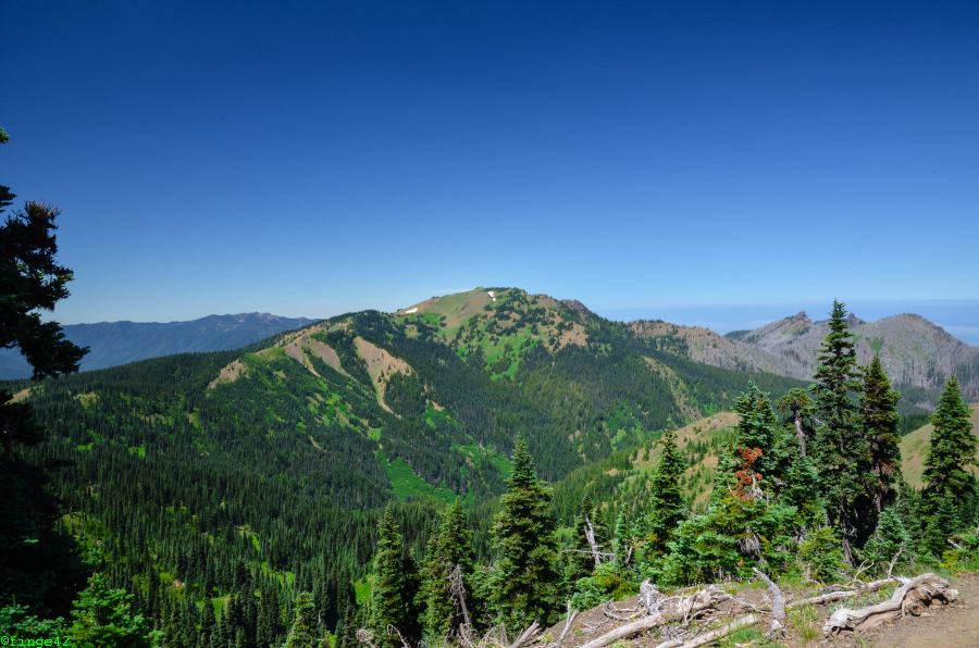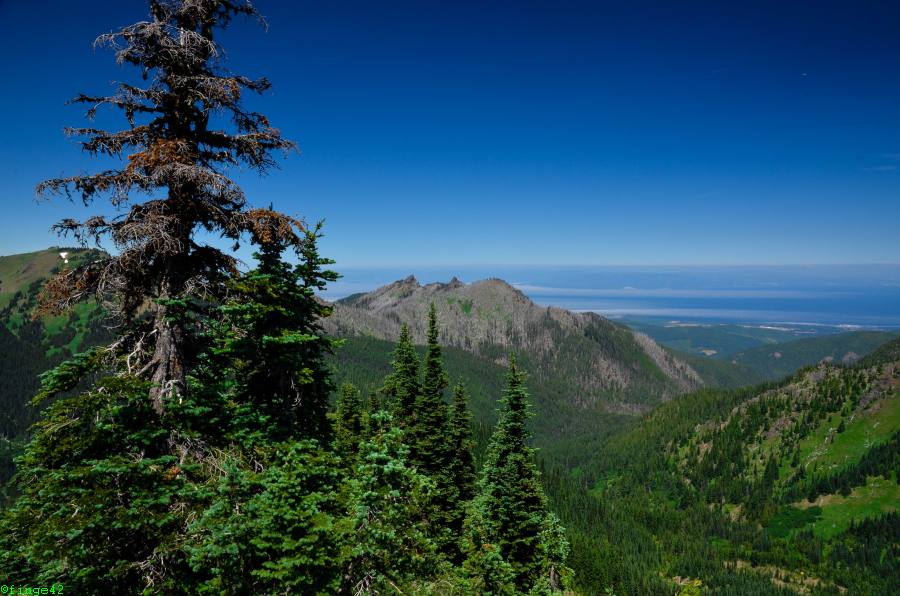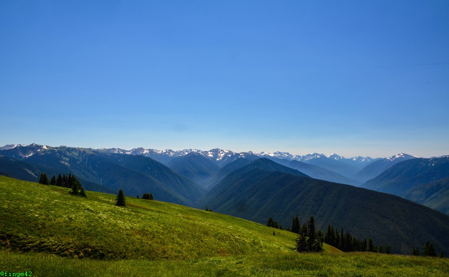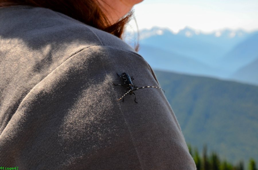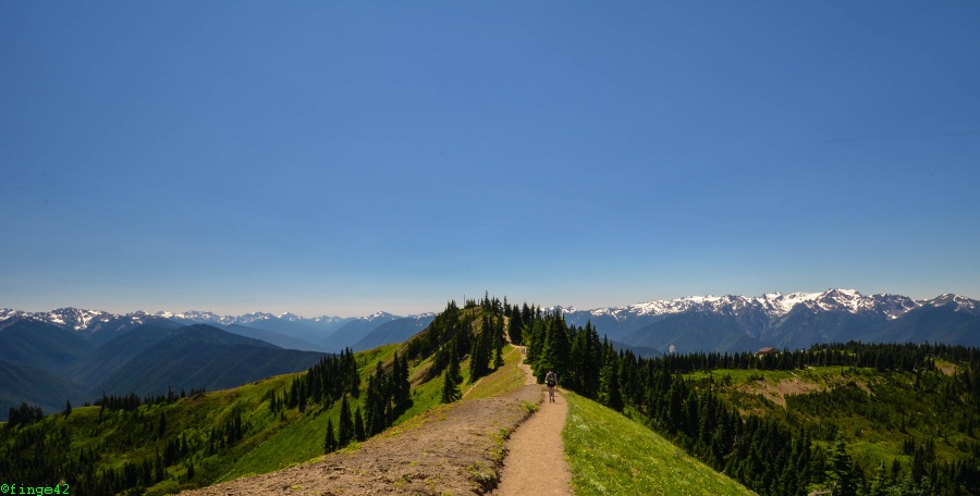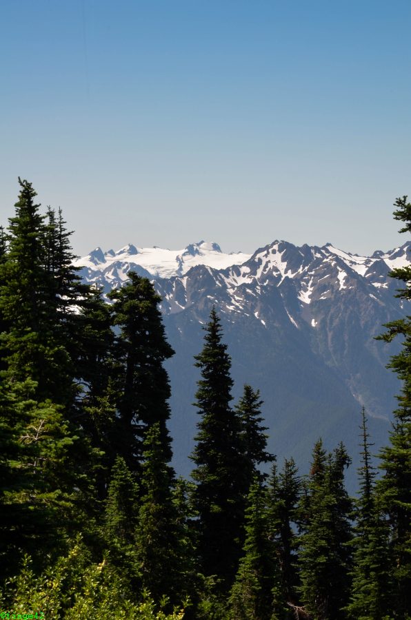 Endlich erreichen wir den Parkeingang und kaufen uns einen Annual Pass. Weiter geht es Richtung Hurricane Ridge hoch in die Berge. Das Visitor Center liegt in etwa 1600 m Höhe, das merken wir schon und schnaufen etwas. Aber der freie Blick auf die Berge der Umgebung entschädigt sofort. Wir können etwa 80 km weit sehen.