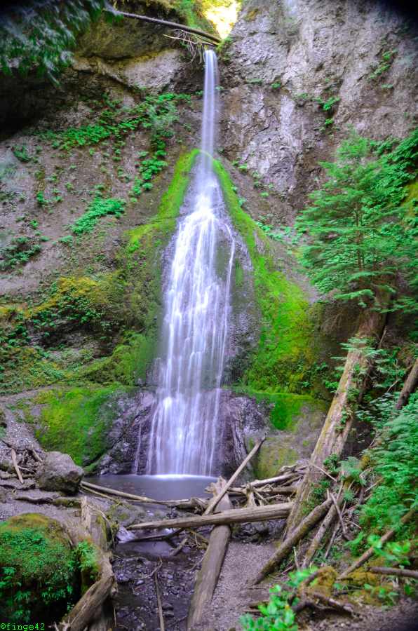 An der Storm King Ranger Station halten wir an, um den kurzen Weg zu den Marymere Falls zu gehen. Der Weg ist einfach und führt durch bewaldetes Gelände. Leider liegen die Falls schon im Schatten, obwohl es erst früher Nachmittag ist. Wir machen ein paar Fotos und schon geht es weiter Richtung Tagesziel – Forks.
