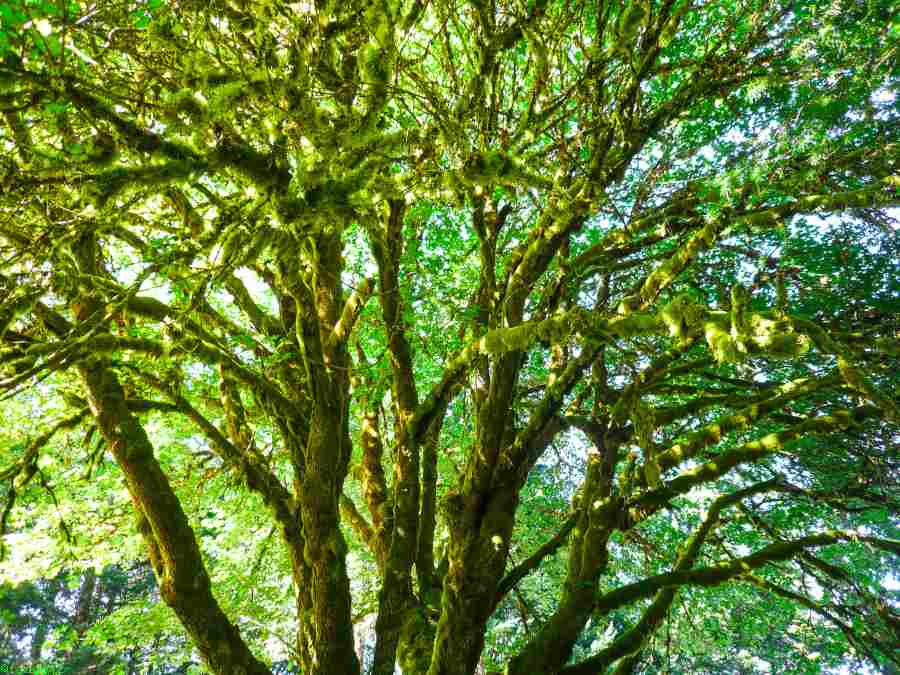 Der ist nicht lang, führt aber wunderbar durch den Regenwald. An jeder Biegung erwarten uns neue Eindrücke, Moos, das großzügig von den Ästen der Bäume hängt, verschiedene Pilze und große Farne. Wir fragen uns, wie verwunschen es wohl im Regen aussehen mag.