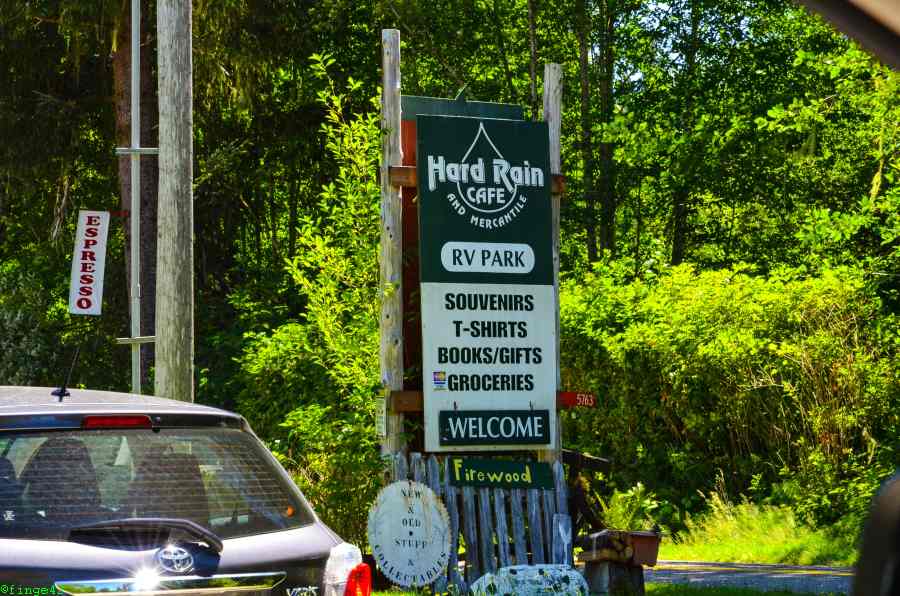 Auf dem Weg zurück zur Hauptstraße fotografieren wir noch das idyllisch gelegene Hard Rain Cafe, gehen aber nicht rein.