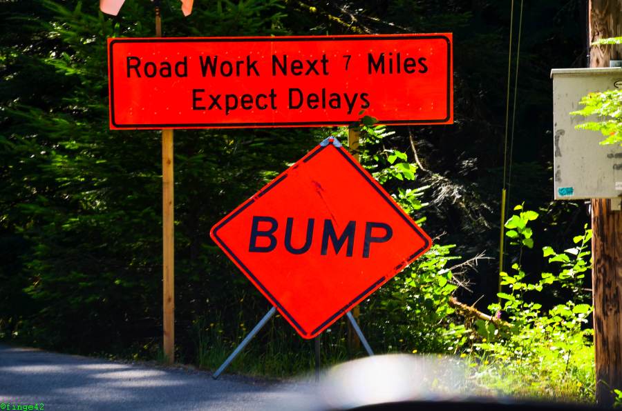 Vor dem Eingang in den Park (Nisqually Entrance) gibt es eine Baustelle, die uns etwa eine halbe Stunde aufhält, dann haben wir es geschafft.