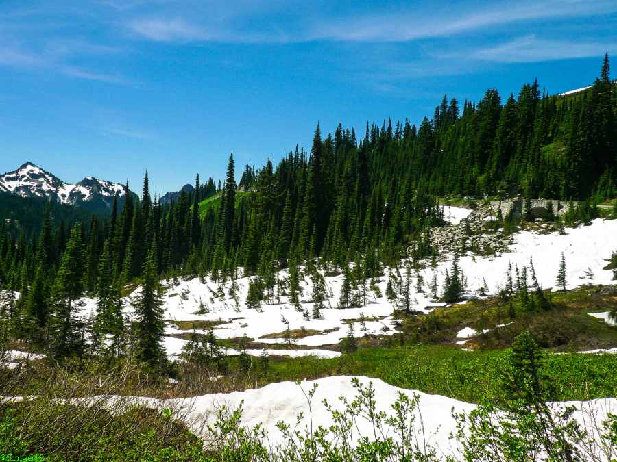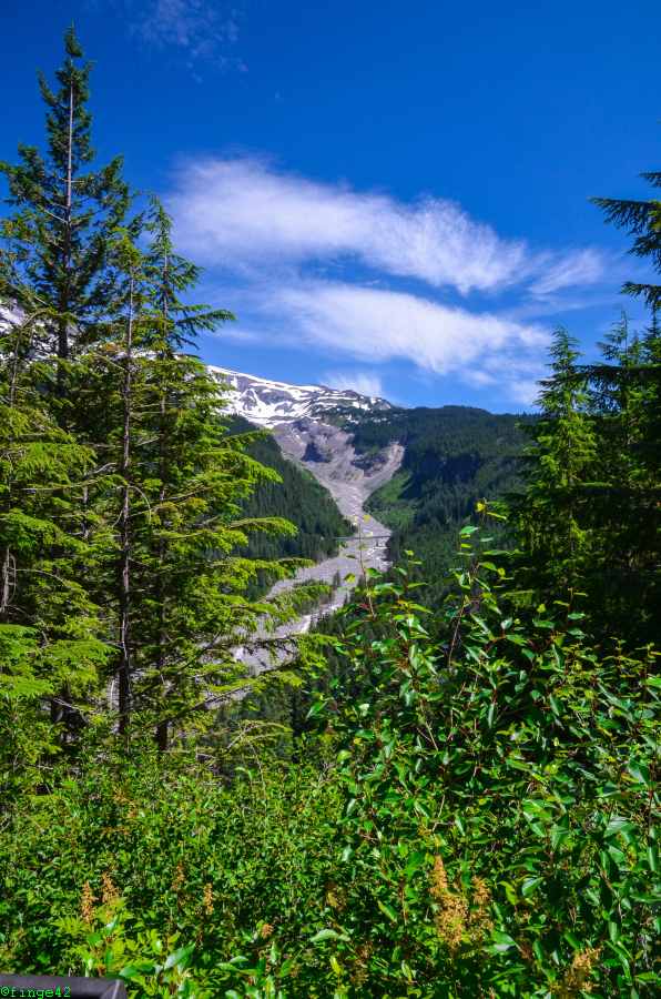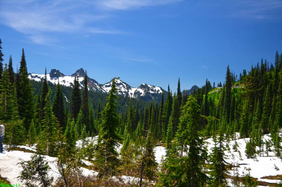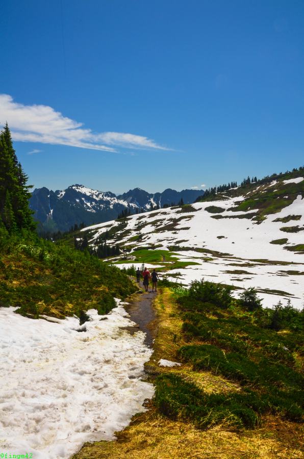 Die Dame im Seasons Motel in Morton sagte uns, dass es bis vor kurzem geschneit hätte. Das Tauwetter hatte wohl kurze Zeit vor unserer Ankunft erst begonnen. Die Wanderung war schon beschwerlich, da man immer wieder durch den Schnee durchbrach bis in das Tauwasser hinein. Trotz guter Wanderschuhe war das schon anstrengend. Aber bei solch einem Blick ist es das allemal wert.  :)