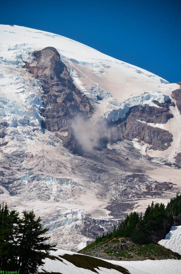 Wir waren knapp 2 Wochen zuvor am Mt Rainer. Die Baustelle gabs auch schon, ruhte aber zum Glueck an diesem Tag. Dafuer lag bei uns noch soviel Schnee, dass alle Wege ab Paradise noch komplett unter Schnee waren. Es gab nur einen einzigen Weg den wir begehen durften, das muesste der Nisqually View Trail gewesen sein. Zum Glueck sind unsere Wanderschuhe wasserdicht, so hatten wir ein rechtes Vergnuegen im Schnee den Trail zu laufen. War aber anstrengend! Interessant zu sehen dass 2 Wochen spaeter schon viel mehr moeglich war. 8)