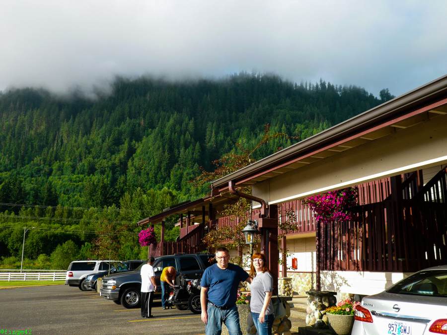 Am späten Nachmittag erreichen wir unsere Unterkunft in Morton (Seasons Motel) und sind ziemlich kaputt. Es scheint ein beliebtes Motel für Biker zu sein, man sieht viele große Motorräder. Die Dame am Empfang ist sehr nett, lebt aber wohl noch immer in den Siebzigern des vergangenen Jahrhunderts. Sie hätte aus dem Stand in „Hair“ mitspielen können. Die von ihr empfohlene Pizzeria entpuppt sich als Pub (The Bucksnort Pub), gut dass Inge ohne Sarah gefahren ist, um Pizza zu holen, die hätte nicht mir rein gehen dürfen. Die Pizza ist aber wirklich lecker und wird im Zimmer schnell verdrückt. Dann schlafen alle in Erwartung des für den nächsten Tag geplanten Highlights (Mount St. Helens) glücklich ein.