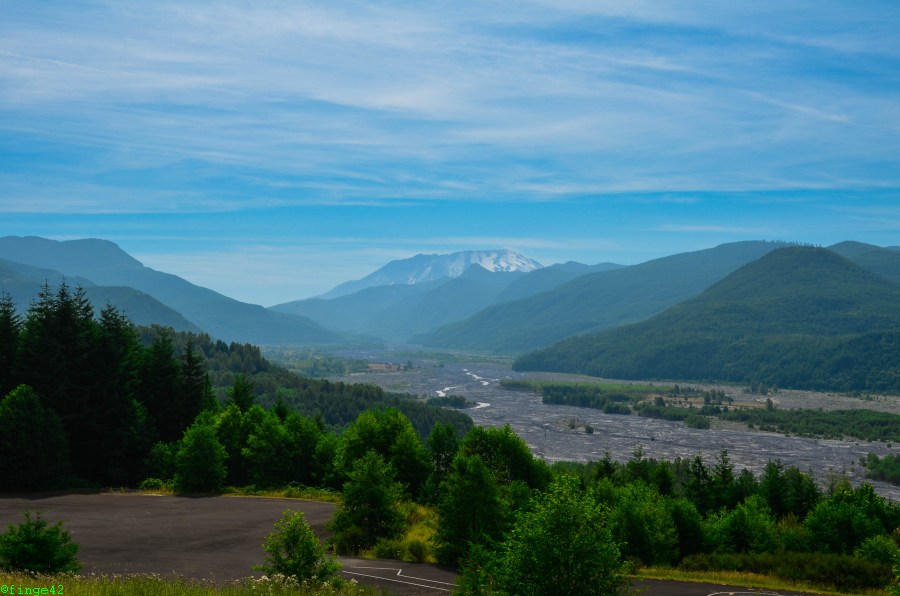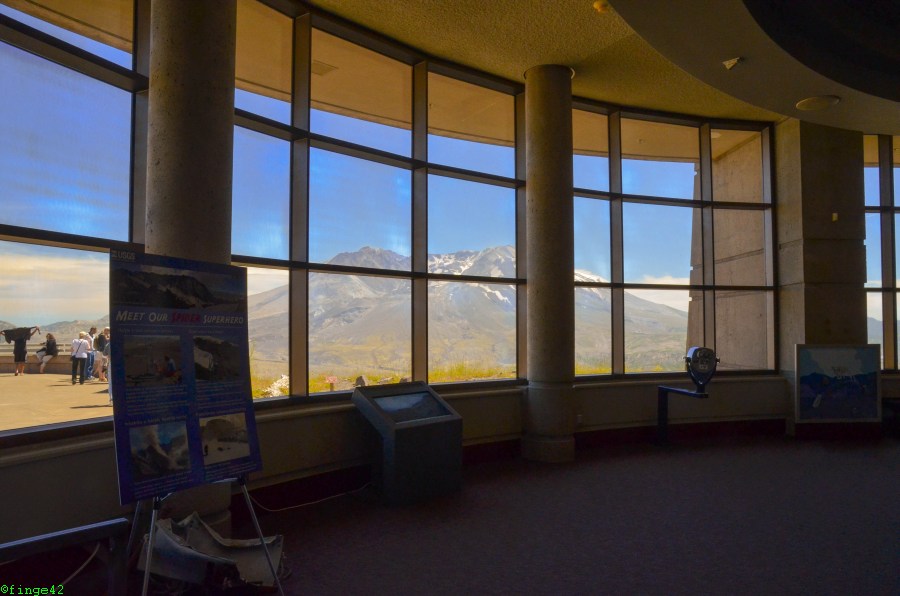 Um uns weiter zu informieren, fahren wir noch bis zum Johnston Ridge Observatory. Der Zugang zu diesem Visitor Center ist wegen unserer Nationalparkkarte kostenlos, wie schön. Von dort hat kann man die Explosion aus dem Jahr 1980 gut nachvollziehen. Man sieht den weggesprengten Krater und die durch die Druckwelle von Bäumen „befreiten“ umliegenden Berge. Noch heute hat sich die Natur nicht vollständig erholt.