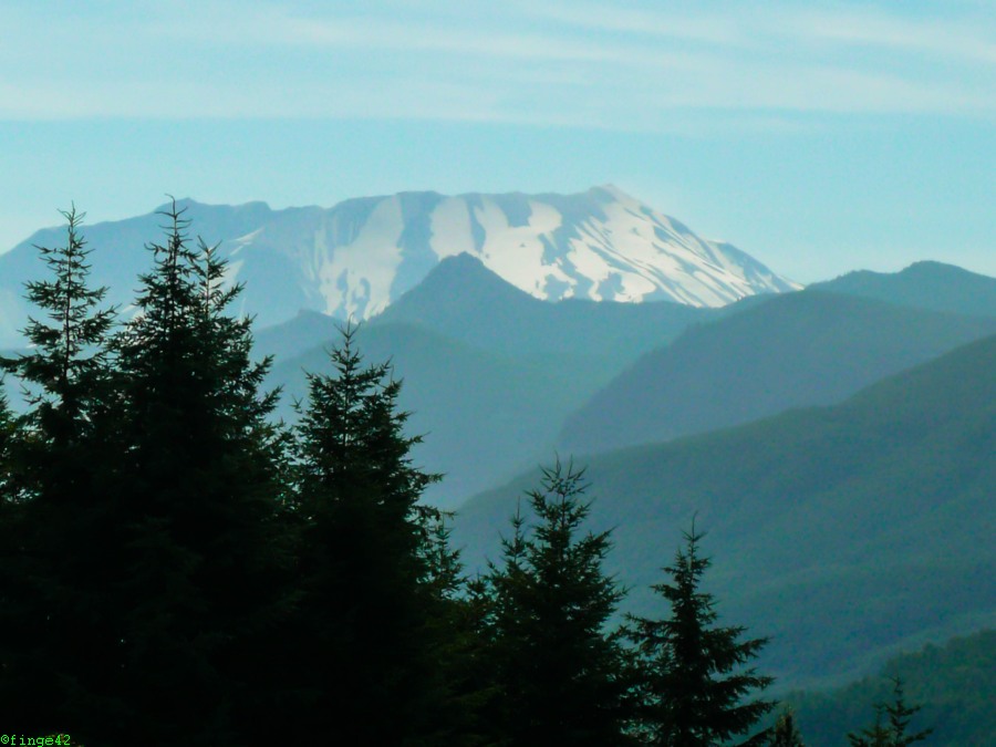 Wenn man in die Ferne blickt sieht man einen weiteren Vulkan, Mount Adams.
