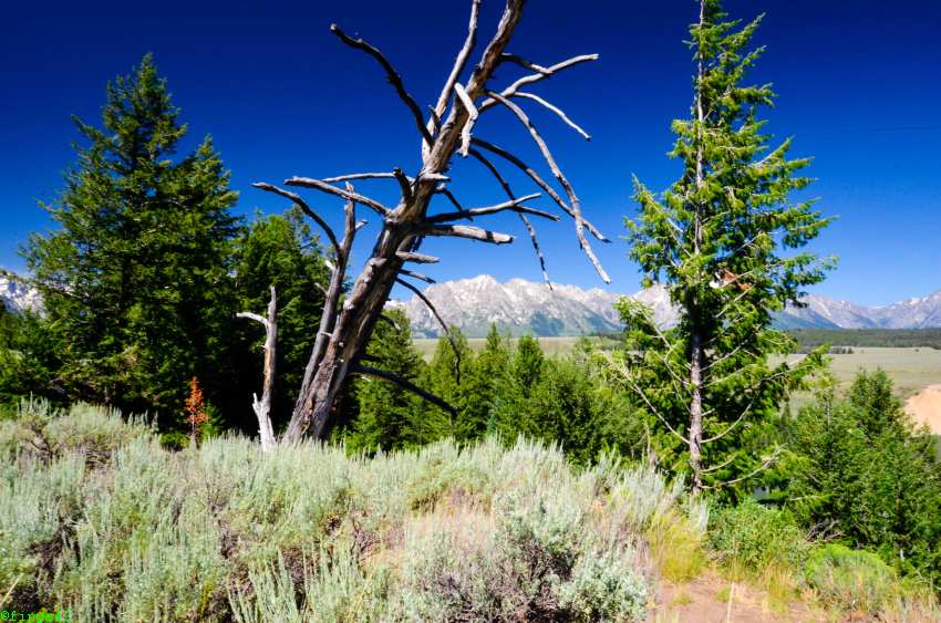Dann geht es weiter nach Norden, bis zum nächsten Halt am Snake River. Leider ist der Blick über den Fluss Richtung Berge etwas eingeschränkt, wir sind wohl nicht an der richtigen Stelle. Aber auch ohne Fluss gibt es sehr schöne Fotomotive.