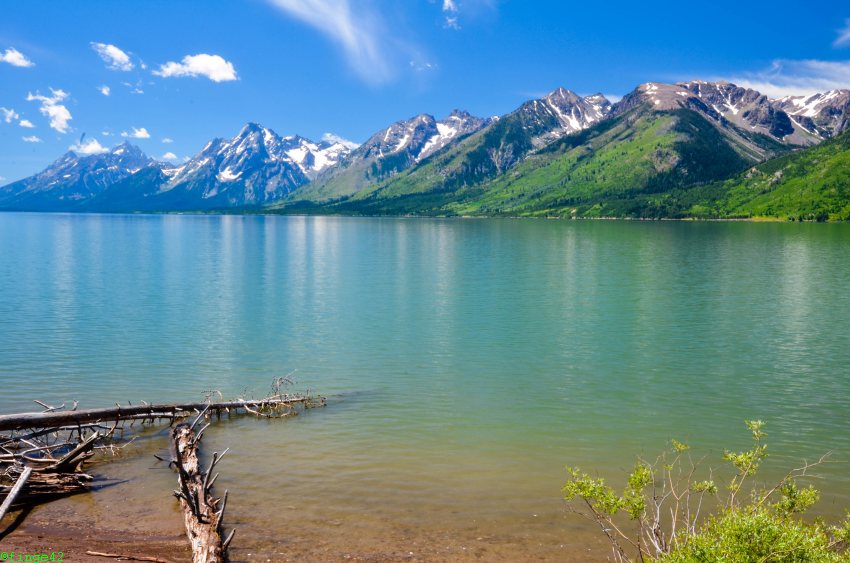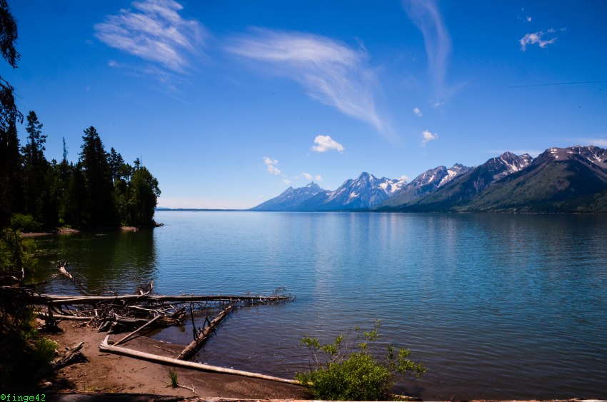Auf unserem weiteren Weg erreichen wir den Jackson Lake, der sich ebenfalls im besten Licht präsentiert.