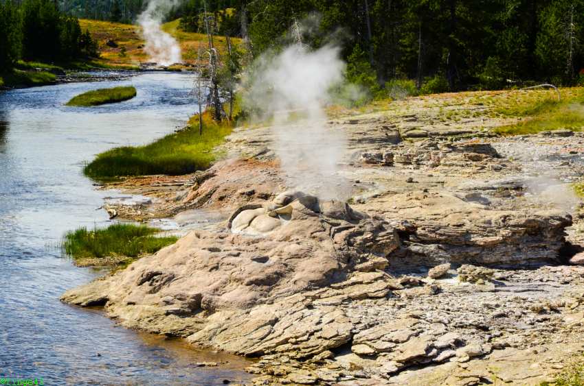 Die Fahrt führt vorbei an unzähligen Geysiren und Pools, deren Namen wir nicht mehr zusammenbekommen, da unsere Reiseaufzeichnungen – wie schon erwähnt - auf einem Parkplatz in Banff liegen. Aber die Bilder sprechen für sich.