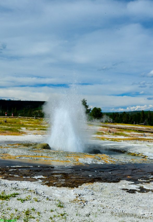 Weil wir noch einiges vorhaben geht es anschließend direkt weiter bis zur Old Faithful Area. Dort ist der Parkplatz schon total voll, wir müssen tatsächlich etwas herumkurven, bis wir einen freien Platz erhalten.