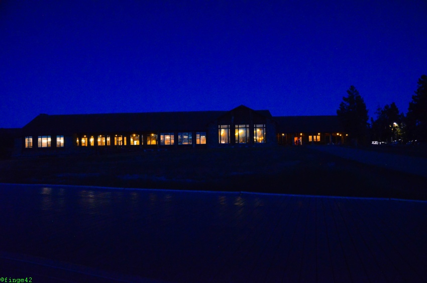 Nach einer kurzen Dusche geht es zum Essen in den Obsidian Dining Room der Snow Lodge. Die Auswahl ist zwar nicht groß, aber recht lecker. Außerdem gibt es unglaublich viele Refills mit Cola. Frank hat am Ende etwa 1,5 Liter getrunken.