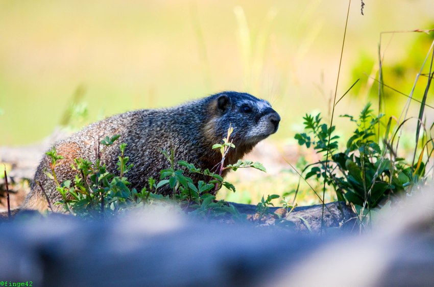 Beim Abstieg hören wir erst die spitzen Rufe eines Murmeltiers, dann sehen wir es auch.