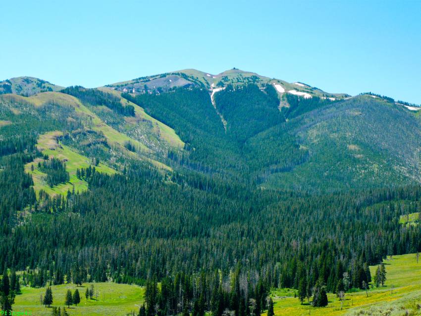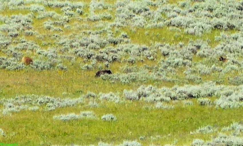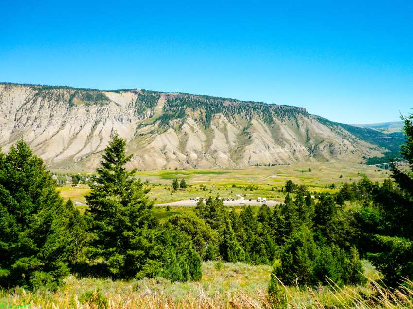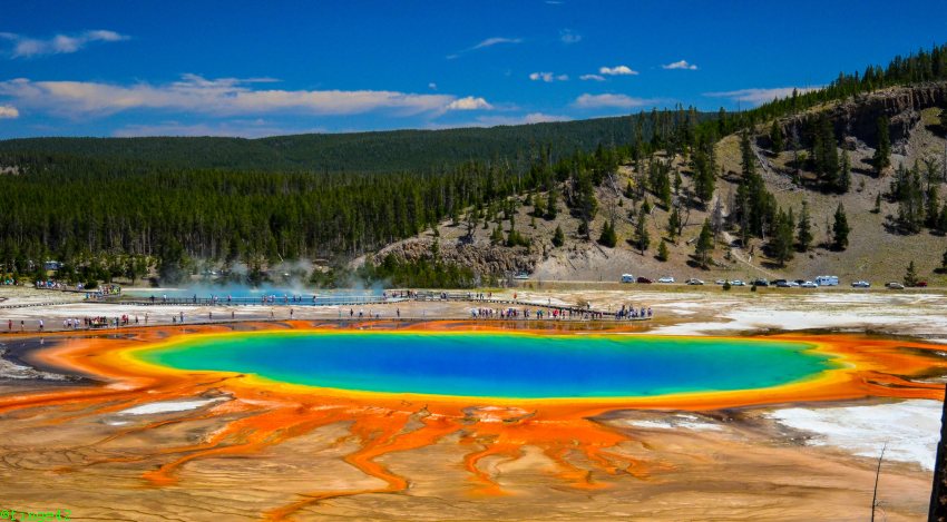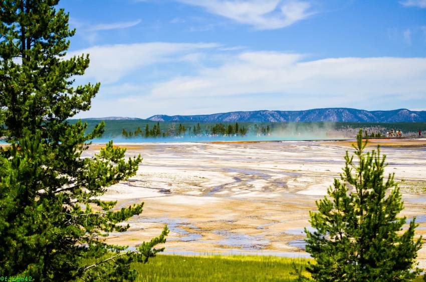 Schon bald sehen wir rechts in der Ferne den Grand Prismatic Spring.