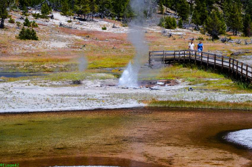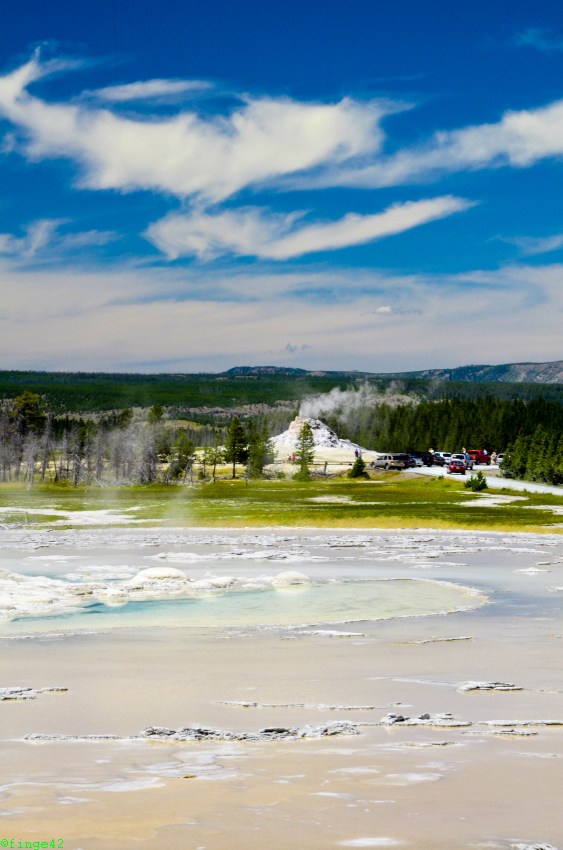 Wieder im Auto geht es weiter nach Norden auf den Firehole Lake Drive. Auch hier gibt es viele Geysire und Pools in allen Farben und Formen.