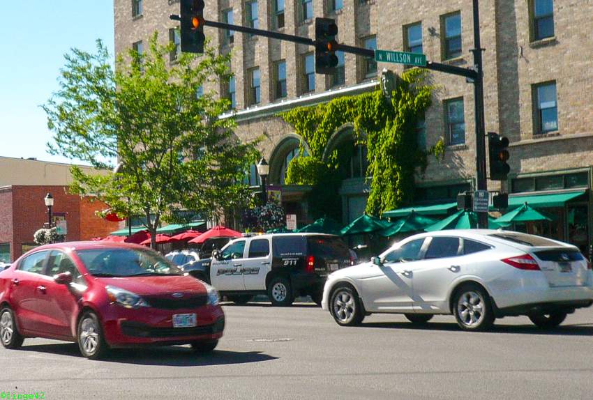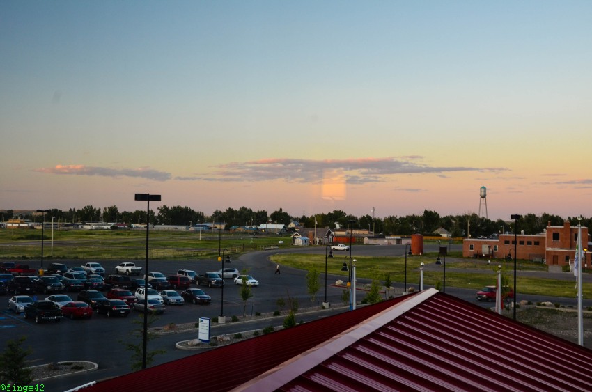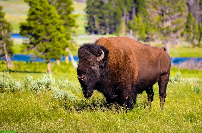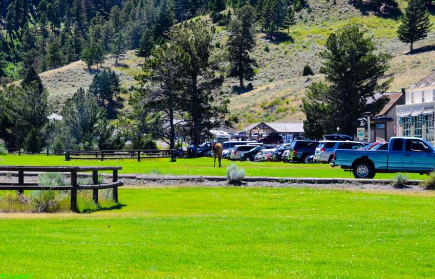 Als wir die restlichen Koffer vom Auto in die Lodge holen wollen, grast es direkt neben den Fenstern der Lodge. Wir beschließen deshalb, am Abend mit dem Auto zum Einkaufen und zum nahe gelegenen Restaurant zu fahren, um dem Bison nicht plötzlich in der Dunkelheit gegenüber zu stehen.