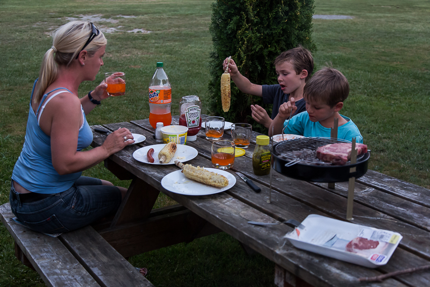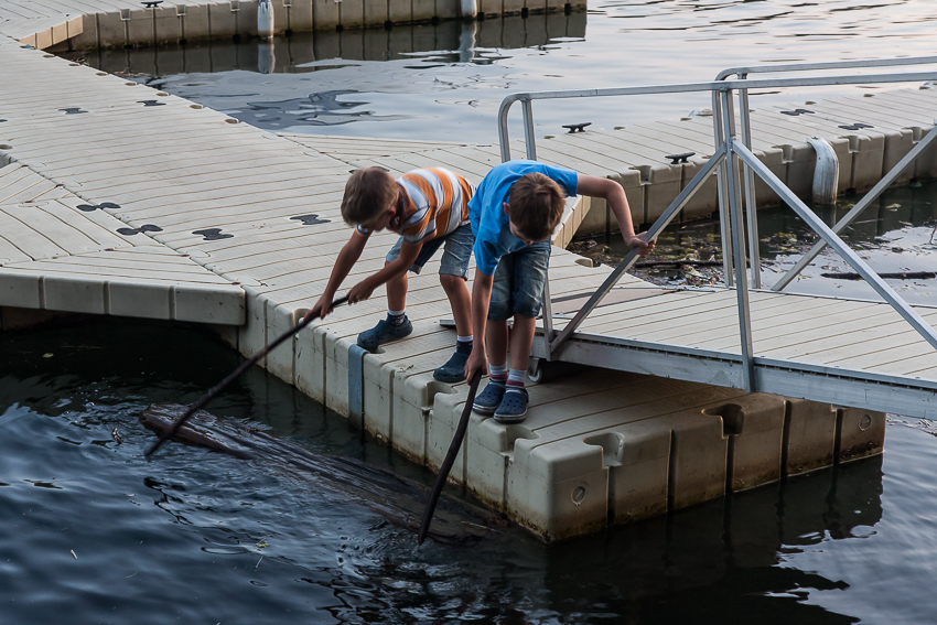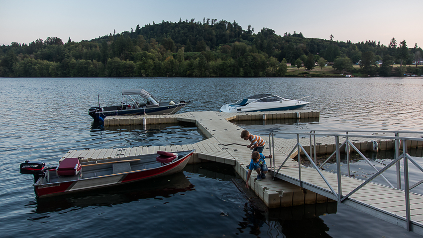 Um 17.30 ging es weiter, wir bogen dann auf die SR-12 Richtung Osten ab und landeten dann gegen 19.20 am Lake Harmony RV Park. Das Büro hatte eigentlich schon geschlossen, aber nachdem wir 5 Minuten lang versucht hatten herauszufinden wie der „Late Check-in“ funktioniert , kam glücklicherweise zufällig die Besitzerin mit dem Golf-Kart vorbei. „Late Check-in“ gibt es nicht, wir hatten Glück. Eingecheckt, angedockt und ab zum See. Die Kinder hatten am Bootssteg noch ihren Spaß, ich ging nach einer Weile zum WoMo zurück, um den von Moturis gestellten Minigrill anzuschmeissen.