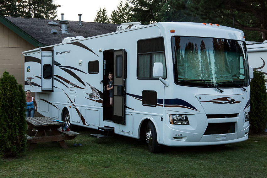 Wir kamen dort um 19.15 an, das Büro war noch offen und ein Platz war auch noch frei - Juchhe. Wir buchten für knapp über 100$ zwei Übernachtungen, da wir morgen erst spät nachmittags von der Orca-Tour zurückkommen würden und übermorgen dann die Boeing- Werke in Everett besuchen wollten. Wir bekamen Stellplatz 7 zugewiesen, der recht schön zwischen den Bäumen lag. Birgit manövrierte das Womo gerade in den Stellplatz, wir holten Wasser,- und Stromschlauch raus und wollten gerade andocken, als Tom meinte - „Strom geht nicht, falscher Anschluss“. Tatsächlich, statt 50 Amp hatte der Anschluss nur 30 Amp. Mit leichten Bedenken marschierte ich ins Office, wer weiß ob noch ein 50 Amp Anschluss frei ist. Tatsächlich meinte die Gute zu mir, das von den beiden 50 Amp keiner mehr frei wäre, da heute Nacht noch jemand ankäme. Sunny, so hieß die Gute, zückte das Telefon und wollte schon das Klären anfangen als sie nochmals in ihren Computer schaute und nur verzückt meinte: oh they are not coming today, place 42 is free.