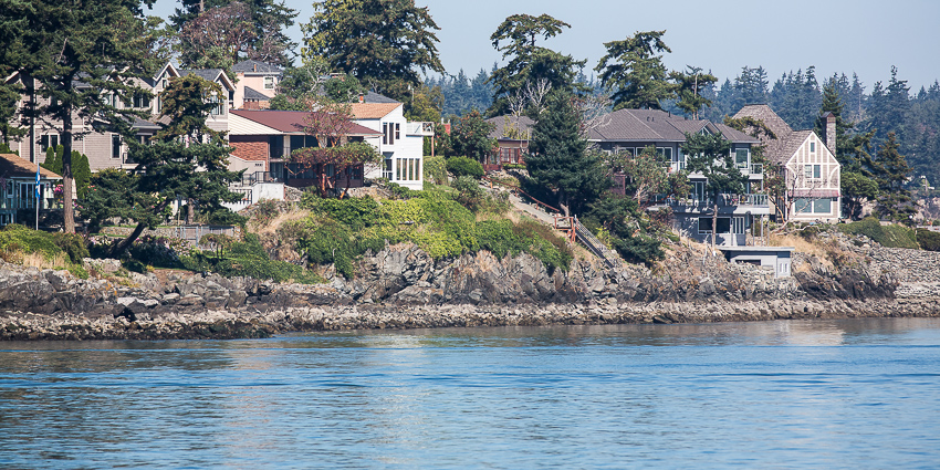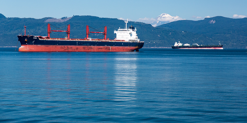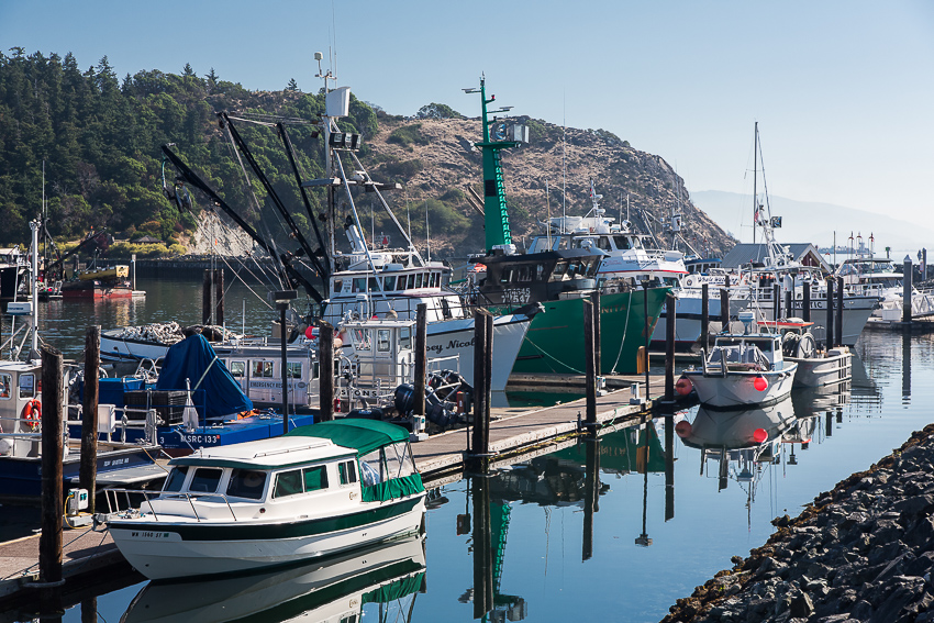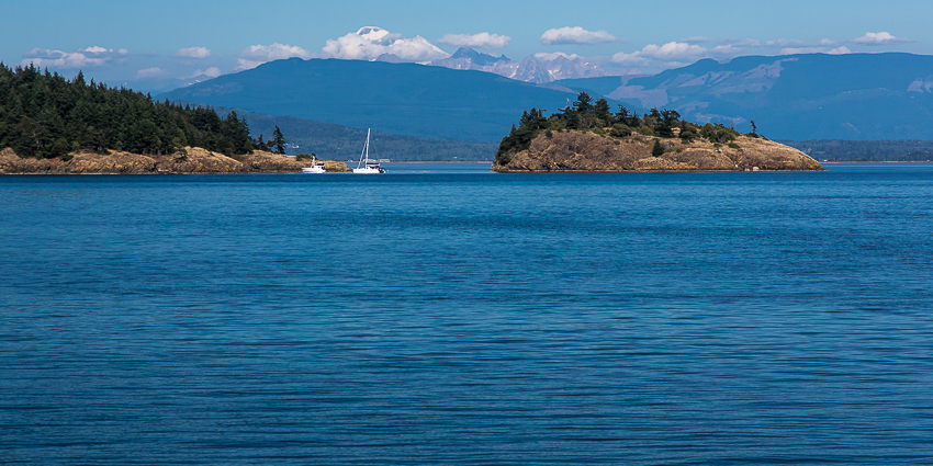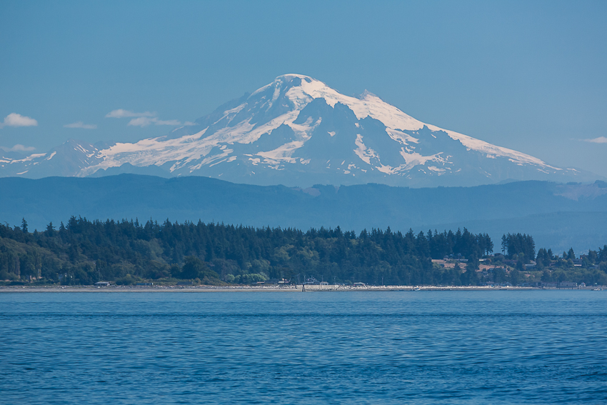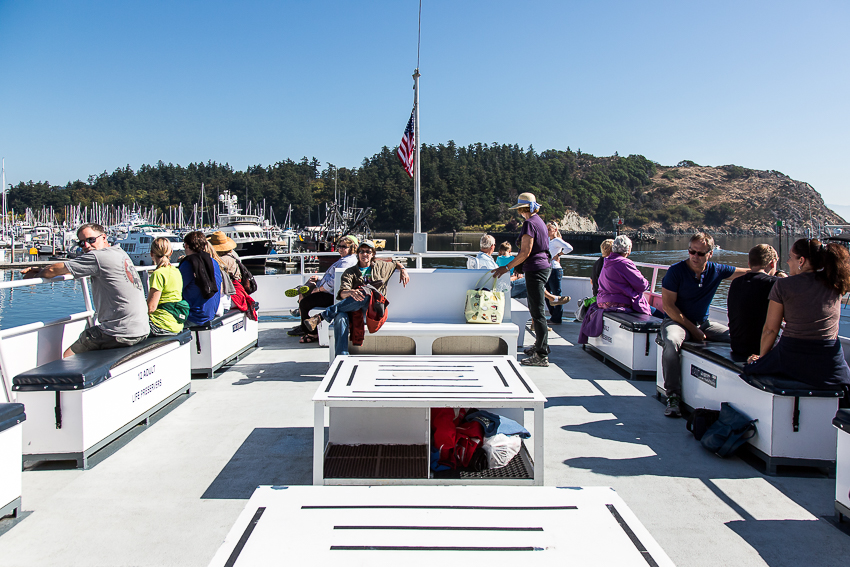 Zwei Minuten später standen wir dann auch schon am Hafen von Anacortes. Dort mussten wir noch ca. 30 Minuten bis zum „Boarding“ warten. Und klein wie die Welt ist, trafen wir dort eine Familie aus dem Harz, die wir bereits am Crater Lake gesehen hatten. Bis zum Boarding unterhielten wir uns noch über die aktuellen Touren und wer was schon wo gesehen hatte. Das Boarding begann dann pünktlich um 10.30 und wurde durch Captain Michael recht unterhaltsam gestaltet. 20 Minuten lang gab es Erklärungen zur allgemeinen Sicherheit, zum generellen Ablauf und wer denn von woher angereist war. Fünf vor 11.00 waren wir dann an Board und es ging pünktlich los. Auf den ersten Seemeilen sahen wir einige große Öltanker, die auf das Entladen ihrer Fracht an der örtlichen Raffinerie warteten.