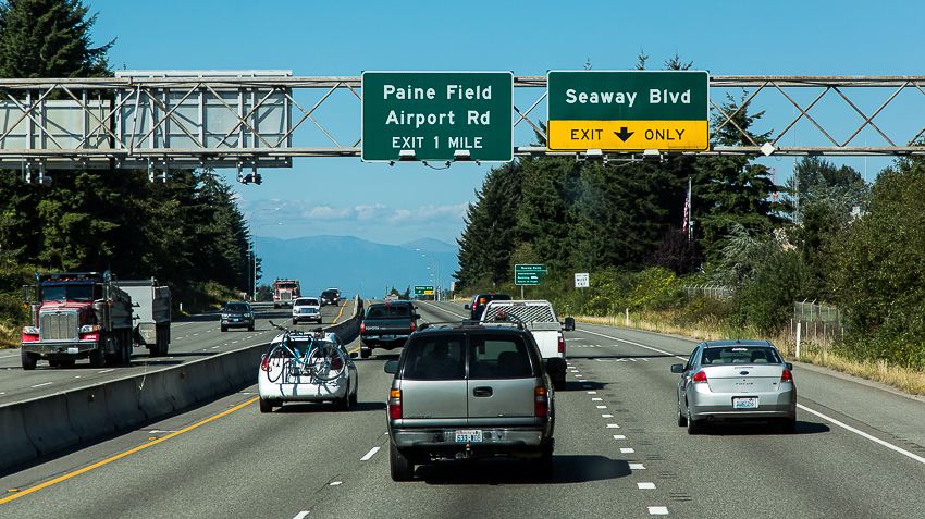 Fazit: auch für nicht technikbegeisterte sind die Boeing- Werke eine faszinierende Geschichte und auf jeden Fall einen Besuch wert. Wieder am WoMo angekommen gab es für Tom - zwischenzeitlich hatte auch er Hunger bekommen - Nudeln mit Ketschup. Mittlerweile war es halb drei, es war also noch nicht so spät. Daher überlegten wir uns uns noch das „Museum of Flight" zu besuchen - ist ja von Everett nur eine knappe halbe Stunde hin. Birgit setzte sich ans Steuer und Tom musste nun also die Nudeln während der Fahrt zu Ende essen. Auf der I-5 angekommen kam es wie es kommen musste - wir standen im Stau. Nachdem das Museum um 17.00 die Tore schloss und laut Reiseführer die Führungen für die Concorde nur bis 15.00 gingen (ich hatte keine Ahnung ob man in die Concorde auch ohne Führung rein kam), verwarfen wir diesen hervorragend ausgearbeiteten Plan auch gleich wieder  :koch:.