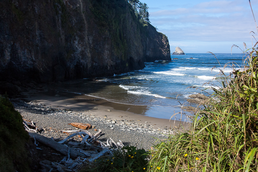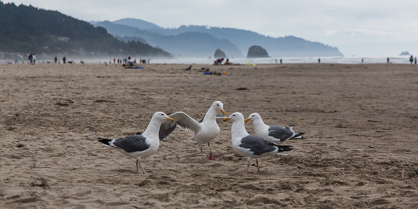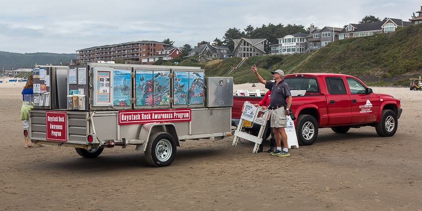01.09. Cannon Beach - Haystack RockDer Wecker des Handys klingelte um 07.40. Heute wollten wir zum Haystack Rock in Cannon Beach. Dort soll es relativ einfach zugängliche, schöne Tide- Pools geben. Nach dem üblichen Frühstück kamen wir einigermaßen pünktlich gegen 09.00 vom Platz. Kurz nach dem RV- Park ging es erst mal Tanken. Die Nadel war bereits unter dem letzten Strich gefallen und wir wollten es nicht bis zum letzten treiben. Teuer würde es jedenfalls werden. Der Tankautomat akzeptierte natürlich mal wieder nicht meinen ZIP- Code, ich durfte beim Cashier vorstellig werden. Nachdem 2x 100$ und eine viertel Stunde unserer Zeit im Tank des WoMo’s verschwunden waren (es hätte noch mehr Benzin reingepasst), ging es weiter Richtung Cannon Beach. Die Fahrt dauerte noch 2,5 Stunden. Dann kamen wir gegen 12.00 in „Midtown“ Cannon Beach an. Dort gab es laut Internet extra ausgewiesene Stellplätze für RV’s.