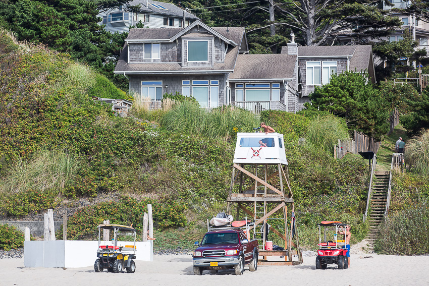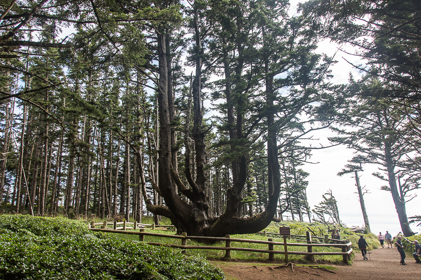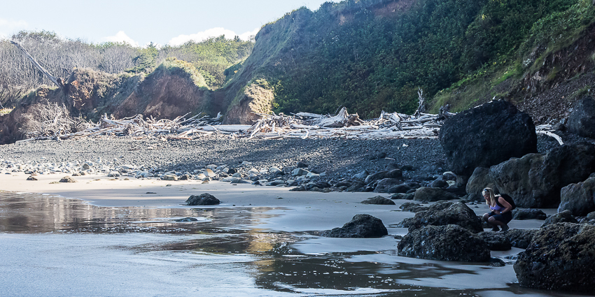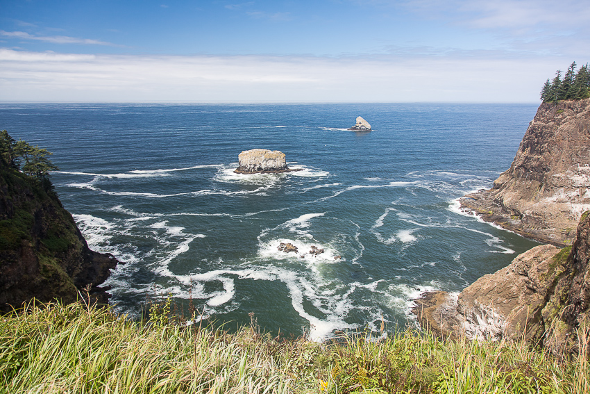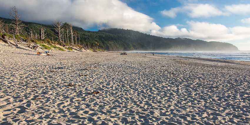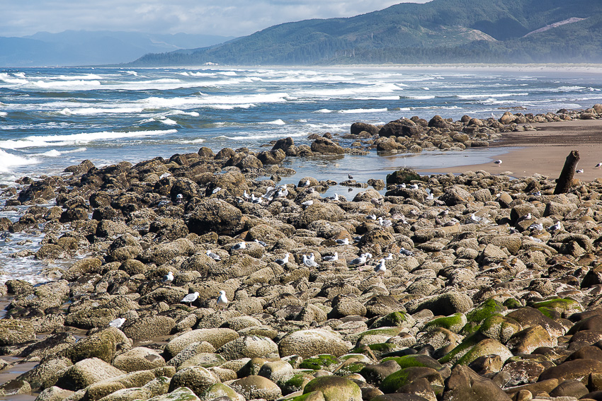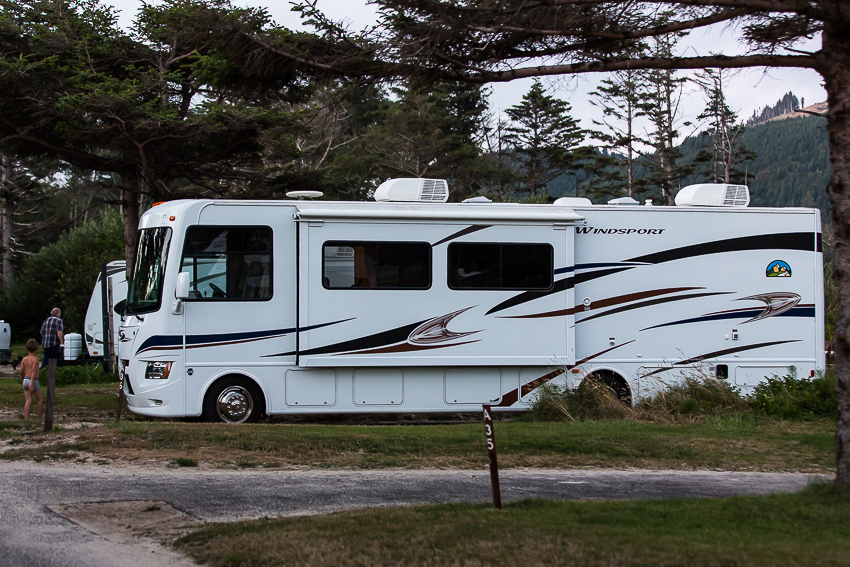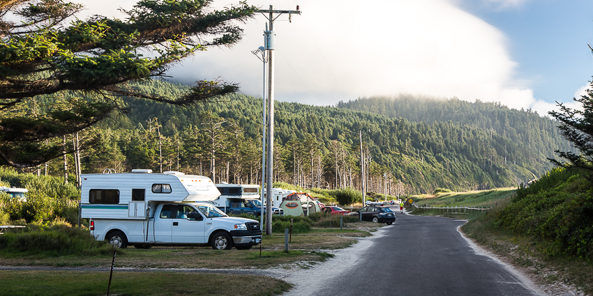 Eigentlich wollten wir in Cannon Beach 2 Tage übernachten - aber so toll waren die Tide- Pools (auch aufgrund der fehlenden Seesterne) jetzt nicht. Also wurde nach gemeinsamer Beratschlagung entschieden, doch noch etwas weiter zu fahren. Ich hatte im GoodSam einen Campground in der Nähe von Tilamook gefunden , der Ocean- Access hatte. Was das genau bedeutete, wussten wir natürlich auch nicht. Also machten wir uns nach über 4 Stunden Beach- Aufenthalt gegen 16.20 vom Strand aus auf Richtung WoMo. Bis die Kinder mit Hilfe der Außendusche vom gröbsten Sand befreit waren und wir wieder auf der Straße waren, war es fast 17.00. Das Navi zeigte genau eine Stunde Fahrzeit an. Nachdem wir zwischendurch noch den einen oder anderen kurzen Fotostopp eingelegt hatten, wurde es dann letztendlich doch 18.15 bis wir ankamen. Aber es war leider mal wieder einer der RV-Parks, der vor allem die Big- Rig’s beherbergte. Und diese standen auch noch relativ eng beieinander. Der Ocean- Access stellte sich auch als eine mit großen Steinquadern hergestellte Böschung heraus. Nach 2 Minuten hin und her überlegen, entschieden Birgit und ich, doch noch einmal weiterzufahren. Ich hatte noch einen weiteren RV- Park in der Umgebung von Tilamook ausgemacht. Vorher wollte ich aber noch dem „Cape Look Out“ State Park eine Chance geben. Auch dieser stand im Good- Sam, allerdings ohne genaue Info. Aber da wir eh fast vorbeifuhren, machte der kleine Umweg den Braten auch nicht mehr fett.