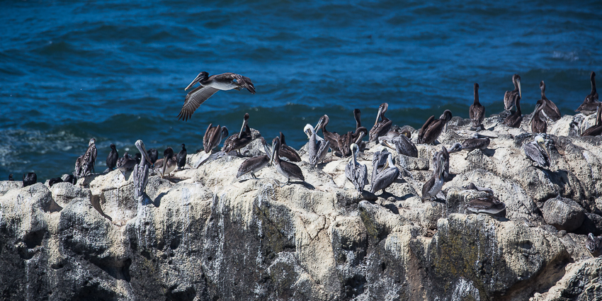 Die Zeit verrann nur so und irgendwann machten wir uns zurück auf den Weg zum Parkplatz. Birgit ging mit Paul schon vor, ich machte noch einmal einen kurzen Abstecher zum Leuchtturm. Anscheinend fand gerade eine Hochzeit oder eine andere Festlichkeit statt. Ein junger Mann im schwarzen Anzug und noch ein Dutzend anderer festlich gekleideter Menschen standen vor dem Leuchtturm und gingen dann hinein. Ich beließ es also bei einem kurzen Blick aufs Meer, holte Tom der zwischenzeitlich bei der Treppe zu den Tidepools gewartet hatte wieder ab und dann gingen wir zurück.