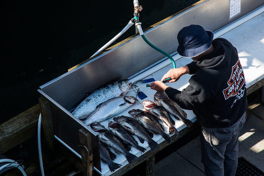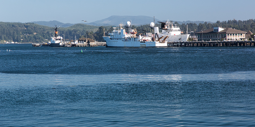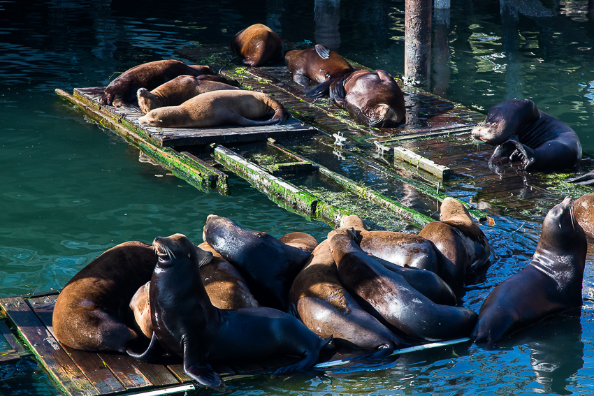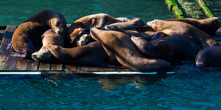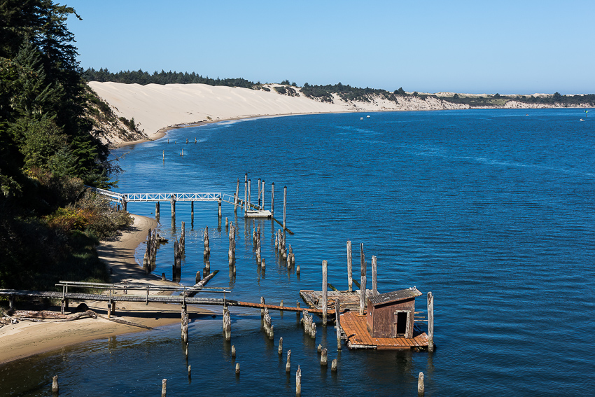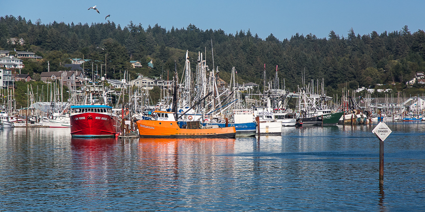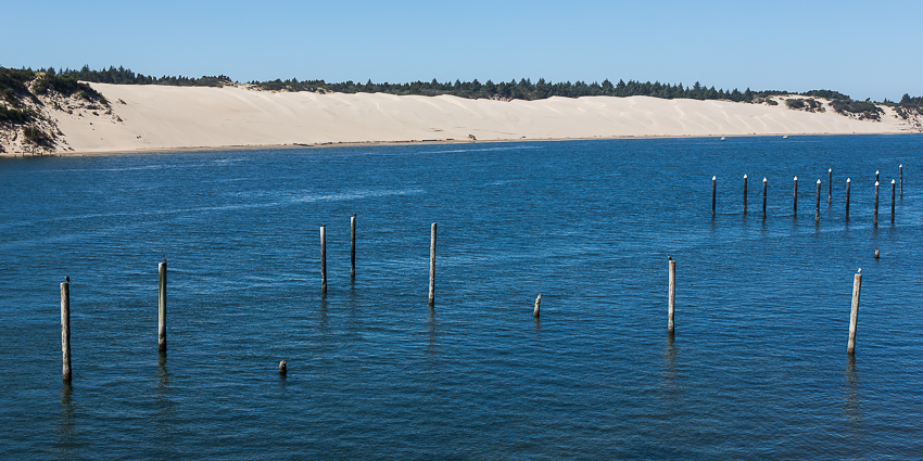 Weitere 10 Minuten später parkten wir einen knappen Block vom Hafen entfernt unser „Schiff“. Das alte Viertel ist wirklich interessant. Nach ein paar Metern schwenkten wir rechts auf eine kleine Holzplattform. Von hier konnte man im Meer schwimmende Seelöwen beobachten und - was für Tom und Paul noch viel interessanter war: unten wurde gerade frisch gefangener Fisch ausgenommen und filetiert. Und von hier oben hatte man einen hervorragenden Überblick. Wir verweilten eine halbe Stunde, dann gingen wir weiter Richtung der kleinen Seelöwenkolonie. Diese musste irgendwo in der Nähe sein, denn hören konnte man sie schon ganz gut. Ein paar Straßen weiter bogen wir wieder auf eine der kleinen Aussichtsterrassen. Und da waren sie: rund 3 Dutzend Seelöwen jaulten und bellten was die Schnauze hergab. Auch hier verbrachten wir bestimmt eine halbe Stunde. Es war kurz vor halb sechs, als ich Birgit und die Kinder zum Aufbruch überreden musste. Wir wollten morgen zum „Oregon Dunes Nation Recreation Area“ und hatten noch immer keinen Plan wo wir übernachten würden.
